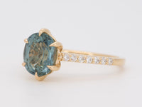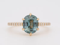 ♥ Solid 14K Gold 2.86ct Bi-Color Teal Sapphire Engagement Ring with Diamond Pave Band R6812