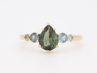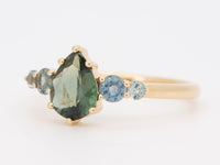 Declare your love with this unique Five-Stone Teal Sapphire Ring crafted from 14K gold! Its charming and sparkling cluster design will take their breath away! Will you say yes?