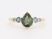 ♥ Gemstone: Center sapphire (not of Montana origin), 1.13ct; side stones are Montana sapphires and weigh 0.42ct total