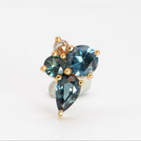 Expertly crafted, these striking teal blue sapphire and diamond cluster earrings will add an air of elegance and sophistication to any outfit. Boasting a creative asymmetrical design and delicate yet dynamic color scheme, these 14K solid gold earrings will be the ideal finishing touch to any outfit.