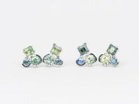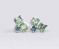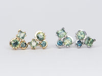 ♥ Teal Sapphire Cluster Earrings 14K Gold R3053