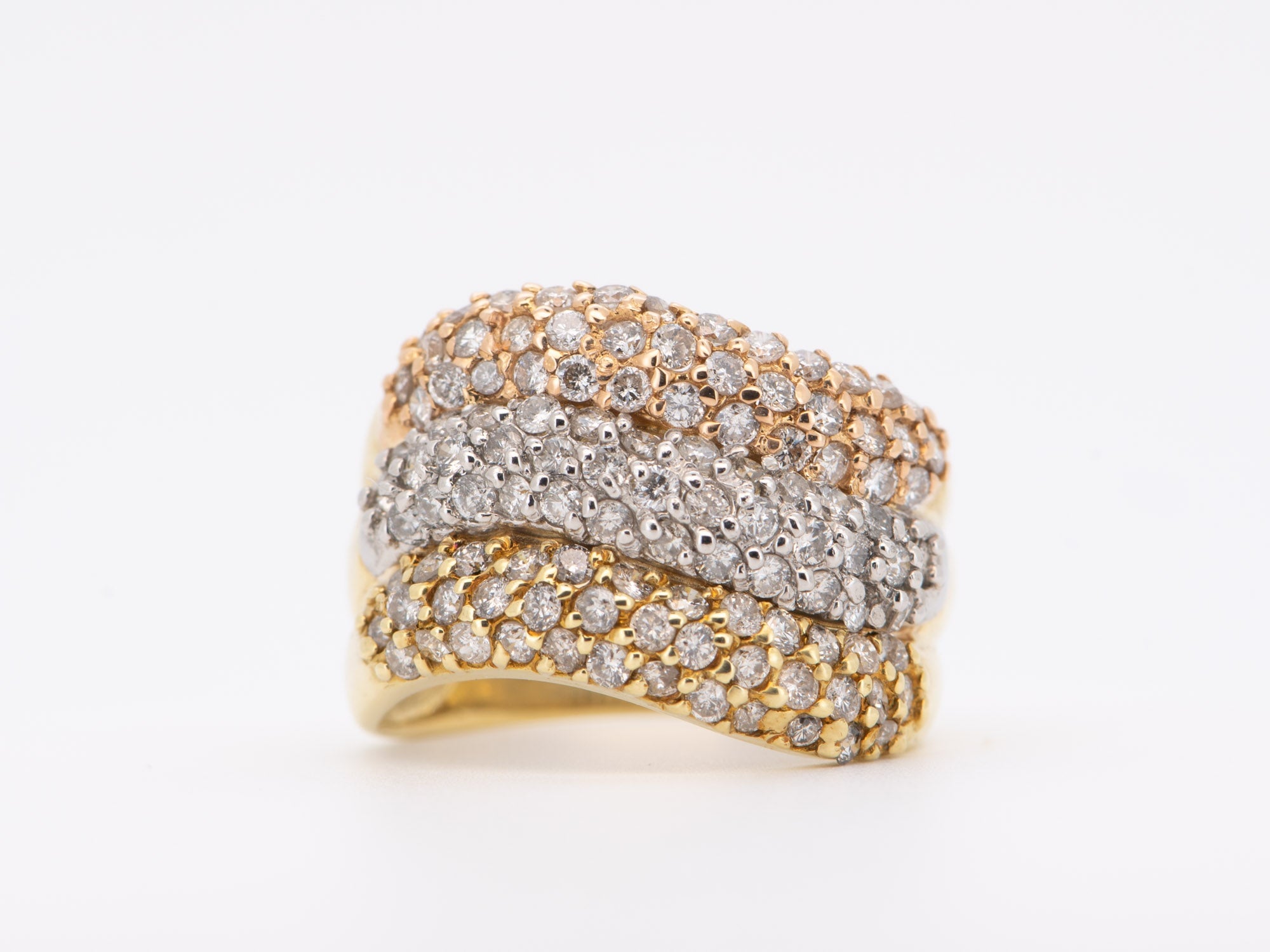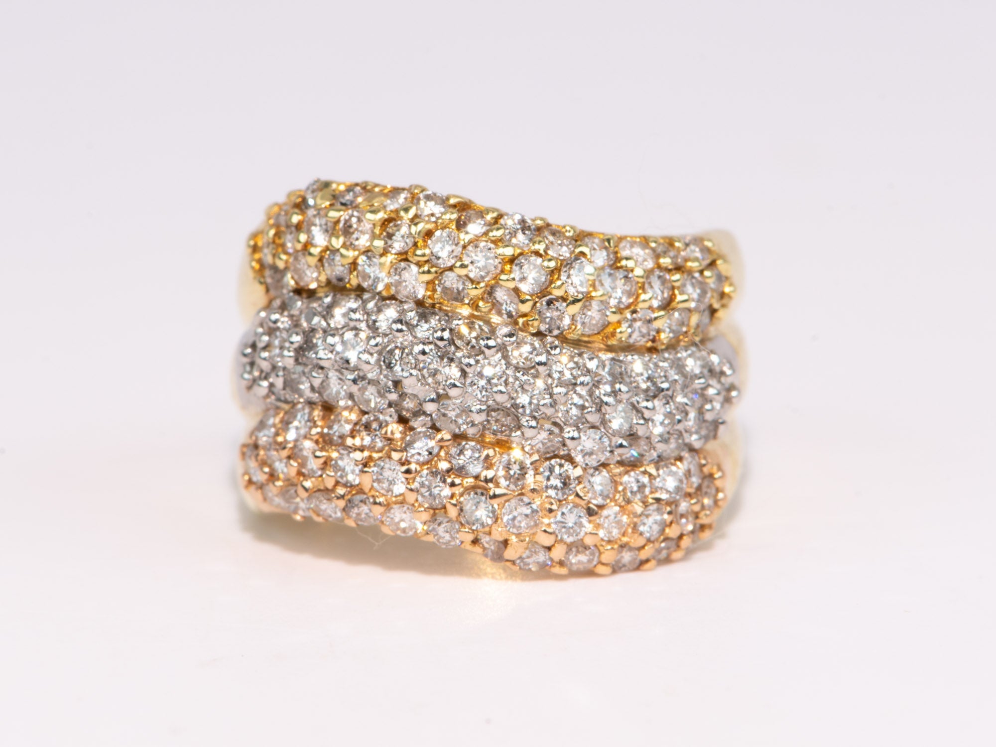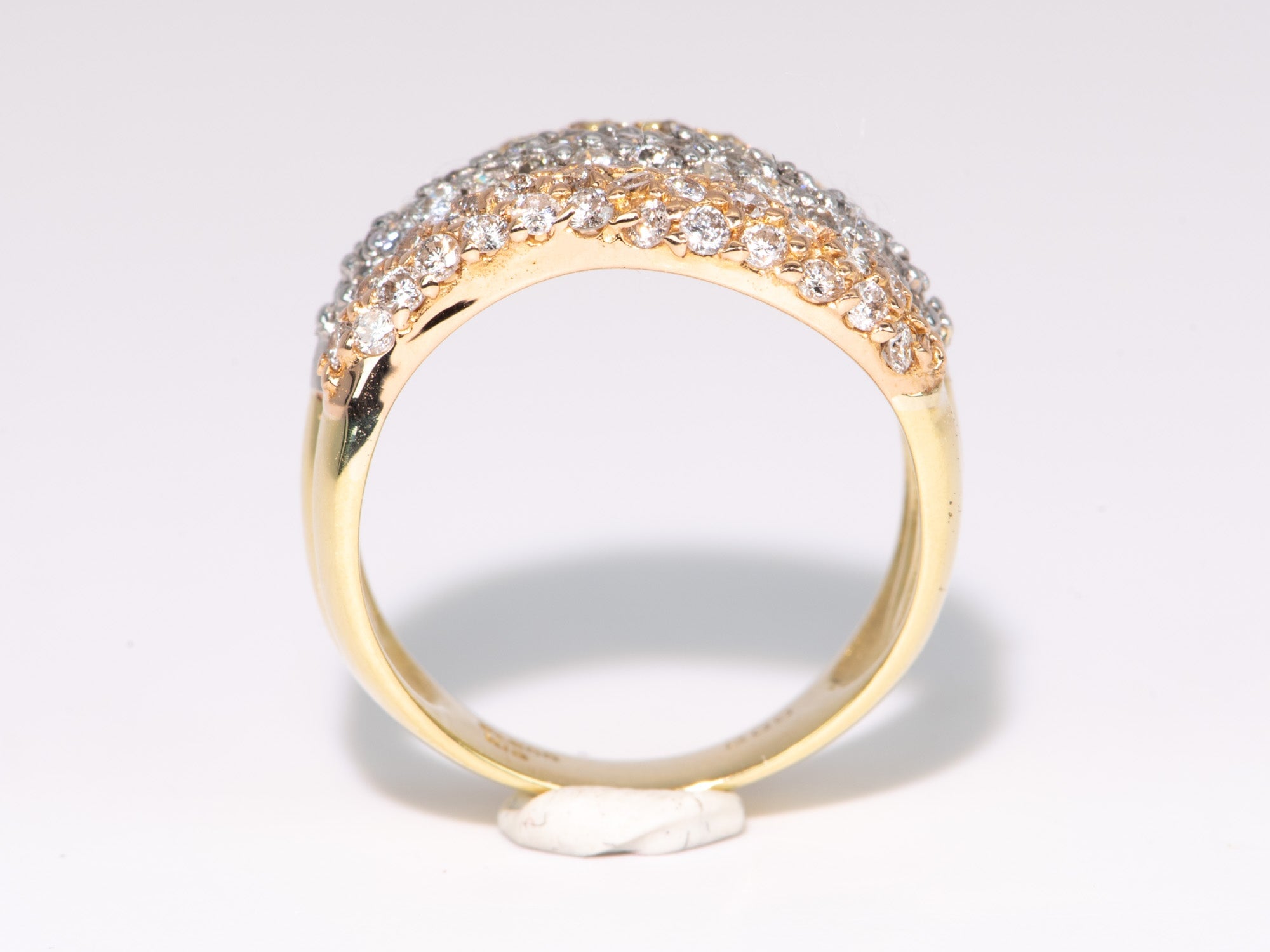 Adorn your finger with our elegant 13mm Wide Diamond Band. Perfectly crafted with white diamonds and 18K yellow gold and platinum. This exquisite ring will leave you feeling like the star of the show!